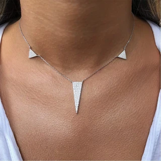 שרשרת צ’וקר / קולר משולשים מכסף משובץ