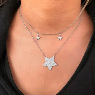 שרשרת כוכב ותליון נופל מכסף משובץ