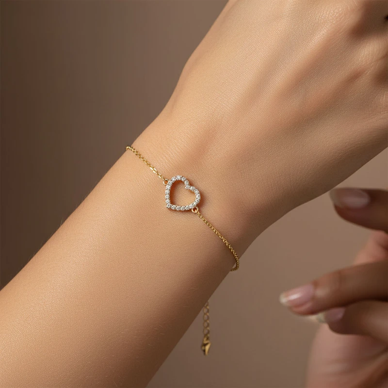 צמיד לב חלול גולדפילד משובץ