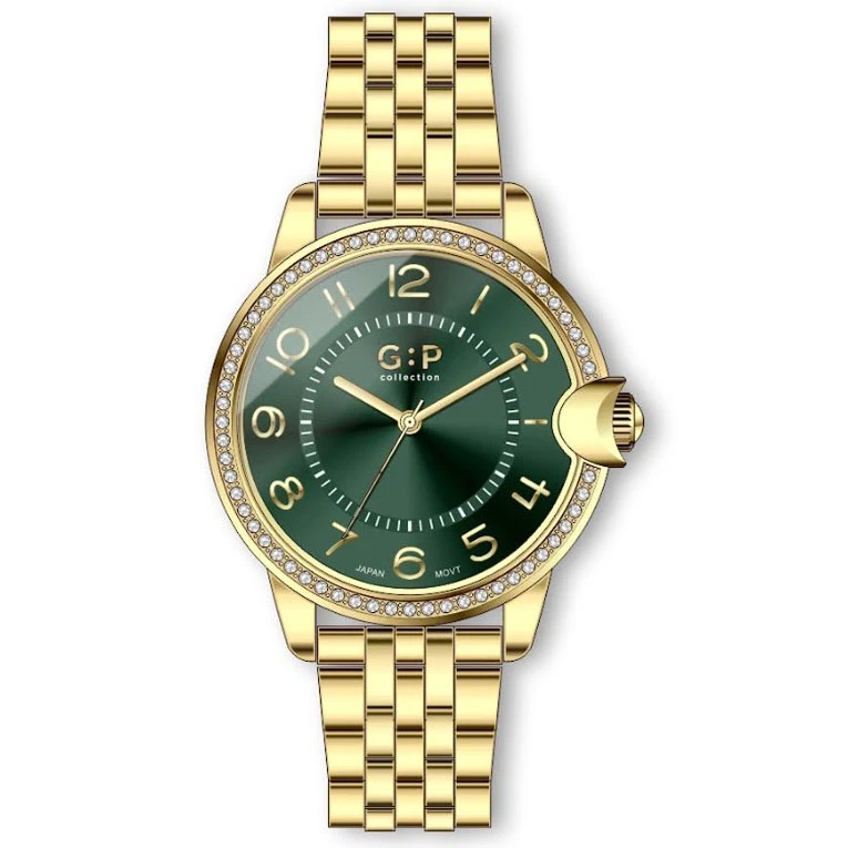• גוף השעון: STAINLESS STEEL – פלדת אל חלד בציפוי זהב עם אבני זירקון.
