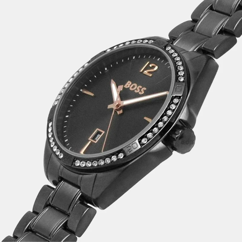 - גוף השעון: STAINLESS STEEL – פלדת אל חלד בציפוי שחור עם אבני זירקון.