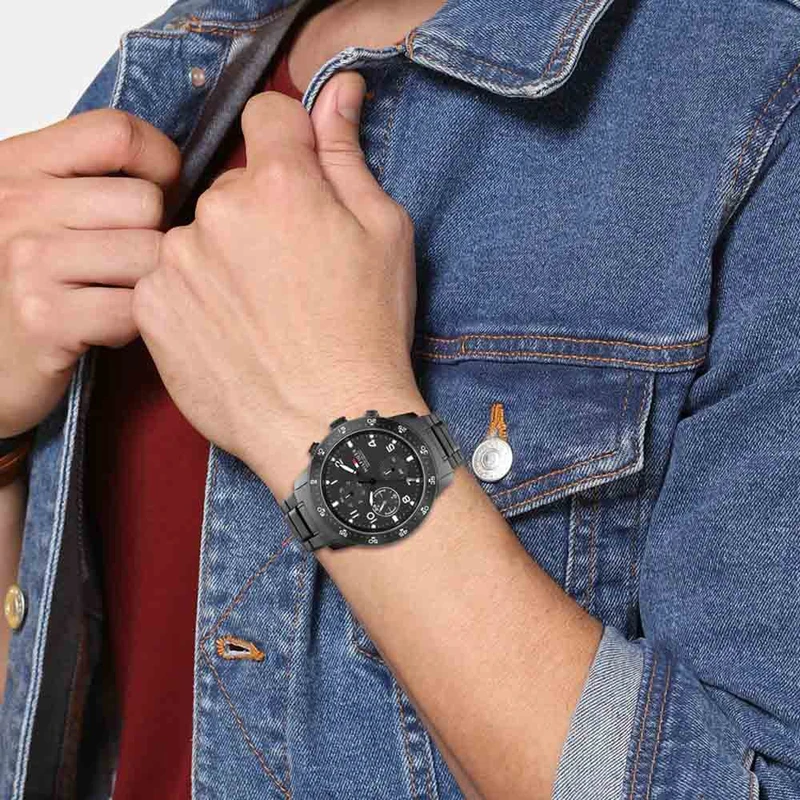 • גוף השעון: STAINLESS STEEL – פלדת אל חלד בציפוי שחור.