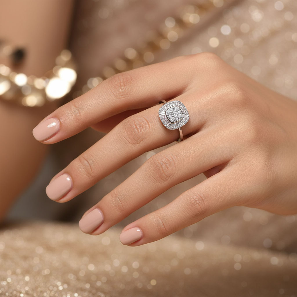 טבעת אפריל מכסף משובץ