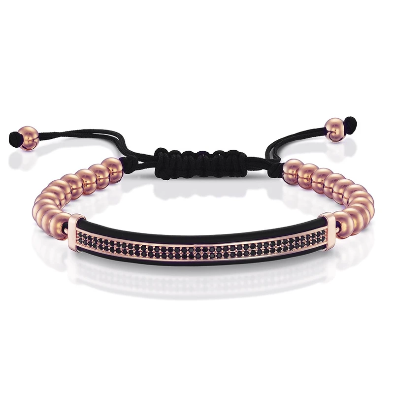 • צמיד כדורים מושחר מפלדת אל חלד בציפוי זהב אדום