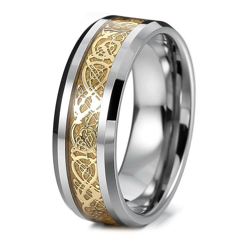 טבעת לגבר טונגסטן כסופה בעיטור מוזהב דגם B32