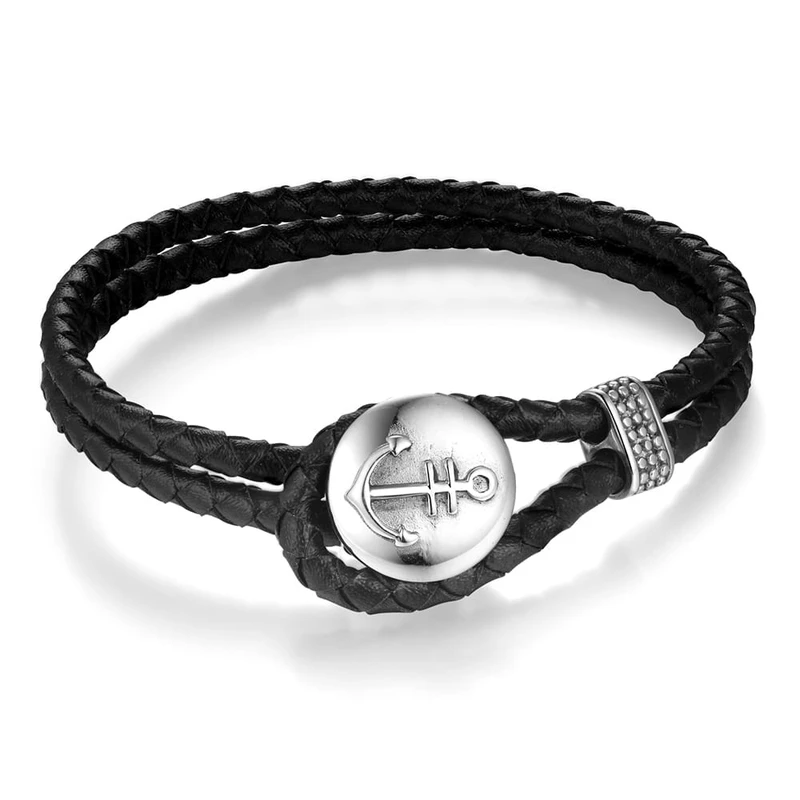 צמיד דמוי עור שחור וסוגר עוגן כסוף דגם B64