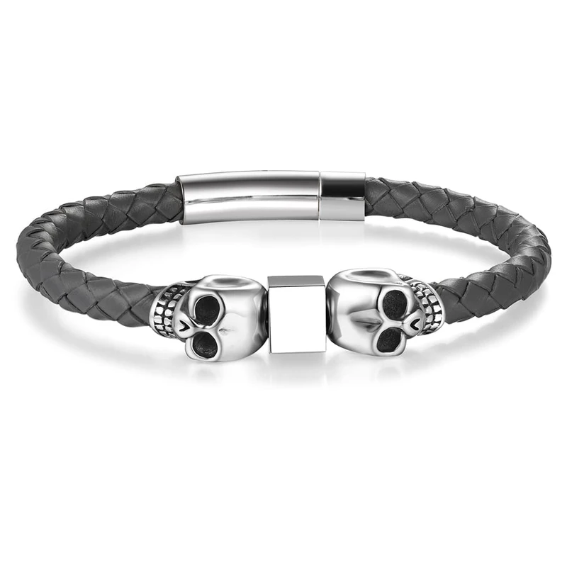 צמיד דמוי עור אפור קשיח וגולגולות פלדת אל חלד דגם B67
