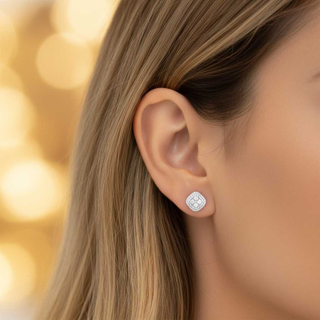 זוג עגילים קרוליין צמודים מכסף משובץ