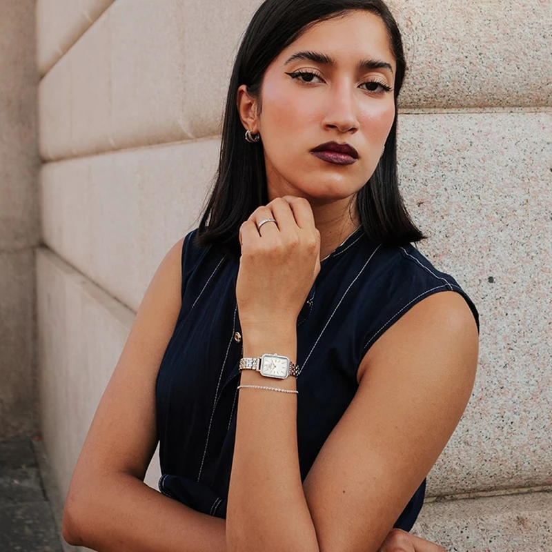 • גוף השעון: STAINLESS STEEL – פלדת אל חלד בציפוי זהב עם אבני זירקון.