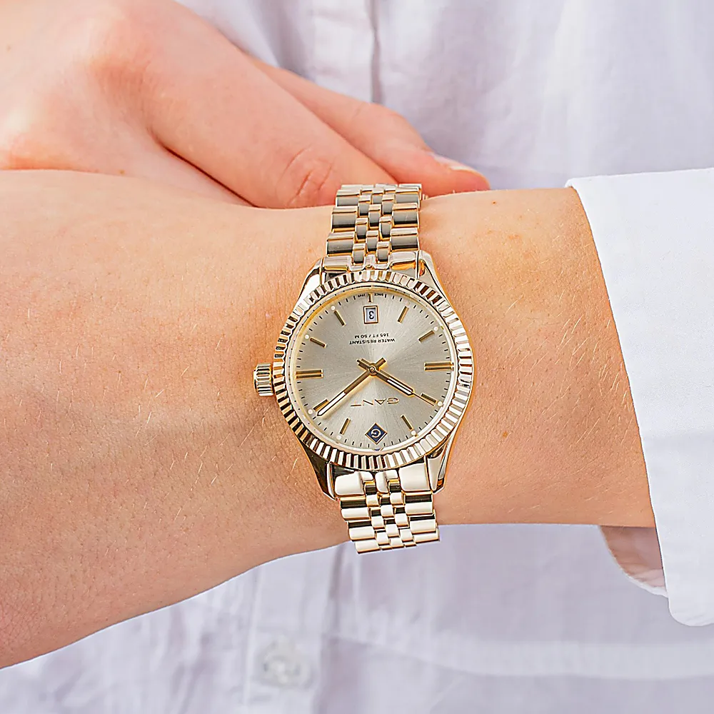 • גוף השעון: STAINLESS STEEL – פלדת אל חלד בציפוי זהב.