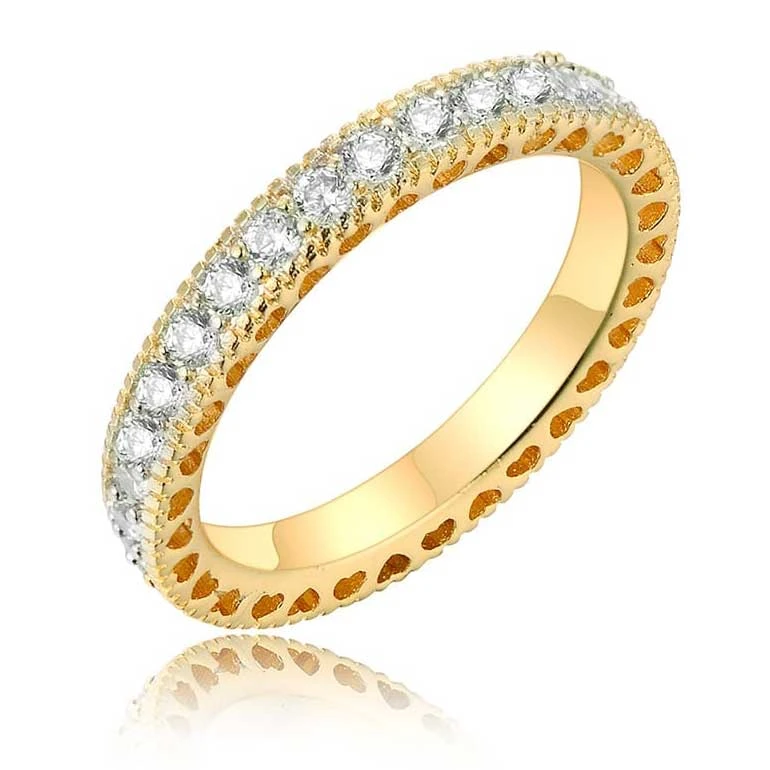 טבעת חישוק מעוטרת מזהב צהוב 14K בשיבוץ זירקונים