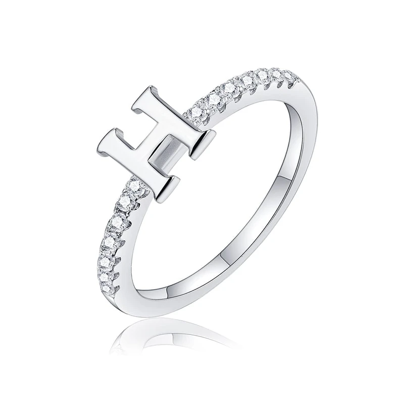 טבעת אות H מכסף משובץ