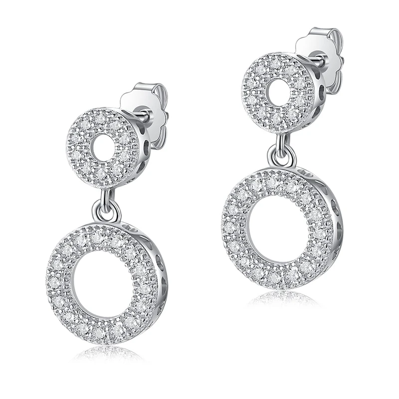 זוג עגילים חישוק לבבות נופלים מכסף
