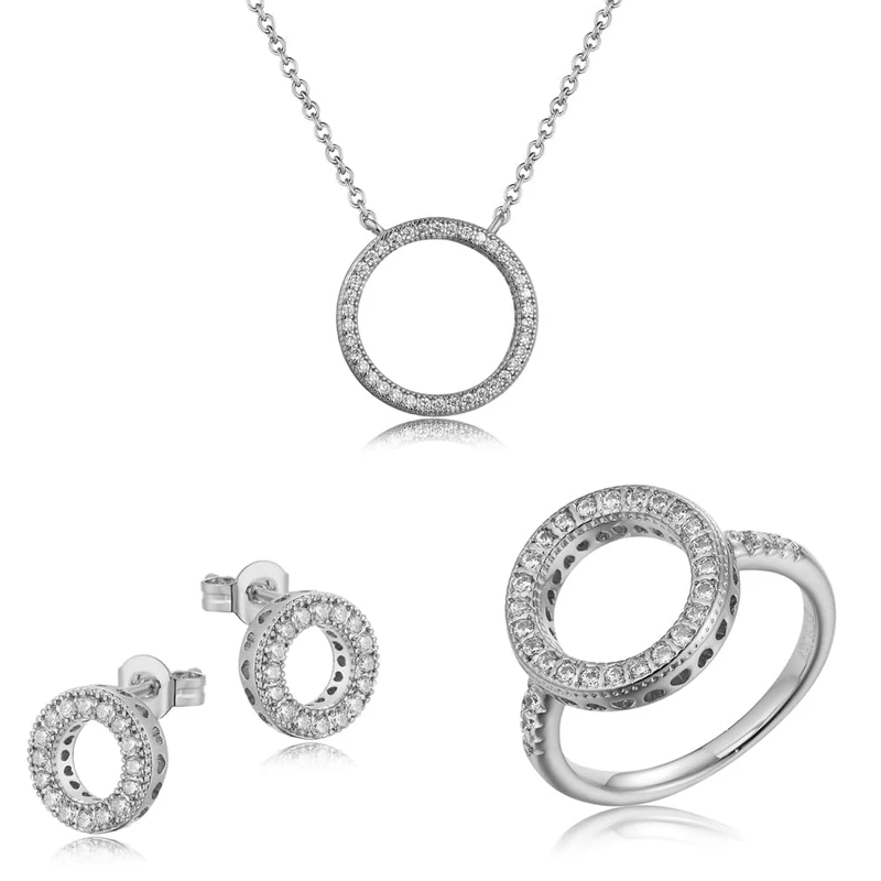 סט חישוק לבבות מכסף משובץ דגם H5 – שרשרת | טבעת | עגילים
