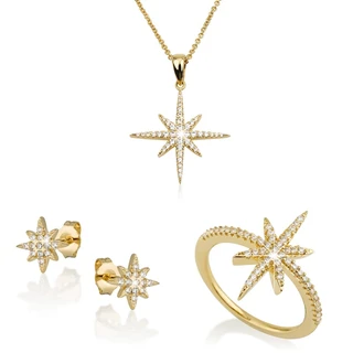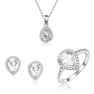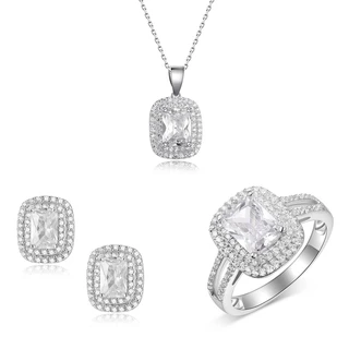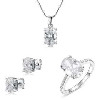 סט קרח מכסף משובץ שרשרת | טבעת | עגילים