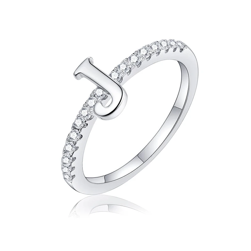 טבעת אות J מכסף משובץ
