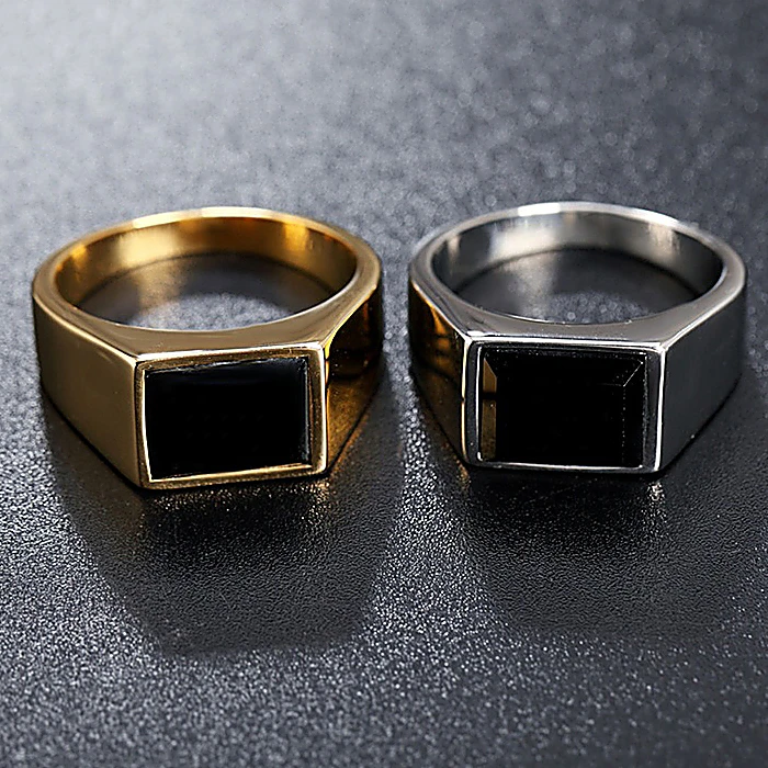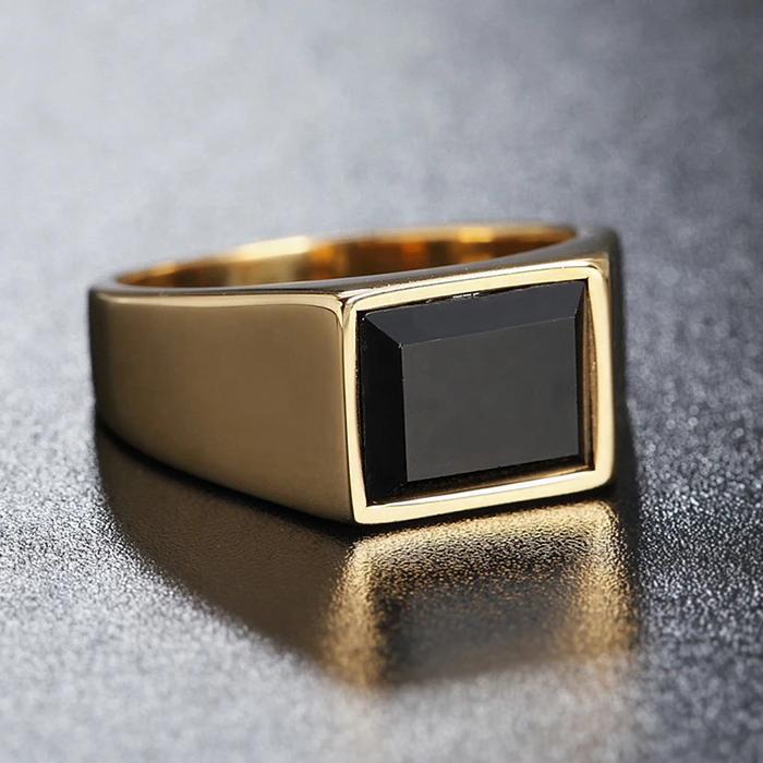 טבעת לגבר ג’סטין מפלדת אל חלד בציפוי זהב ואבן אוניקס