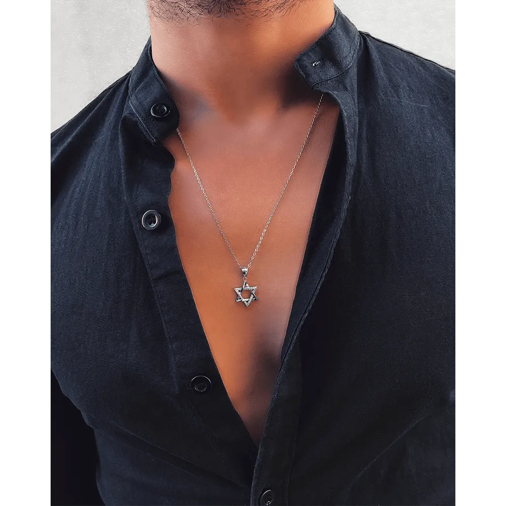 שרשרת מגן דוד מכסף משובץ דגם MD