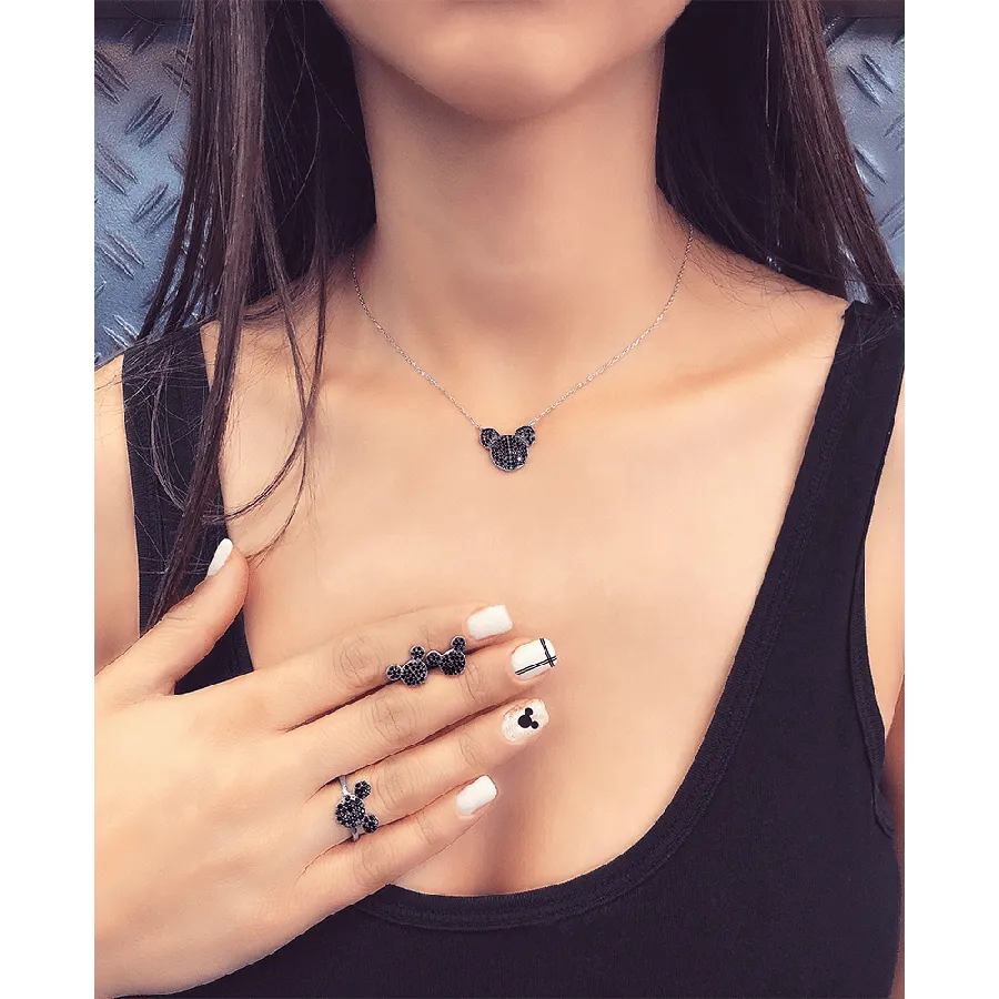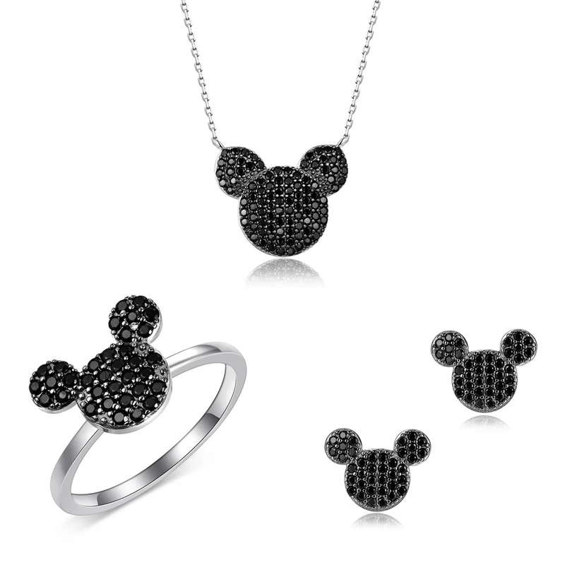 סט מיקי מכסף בשיבוץ שחור