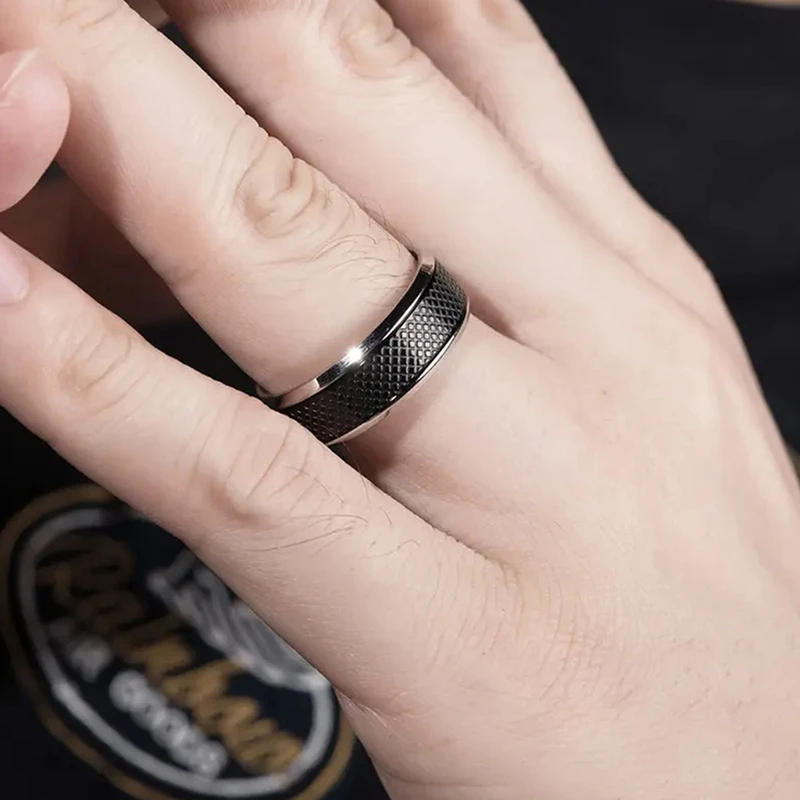 טבעת לגבר פלדת אל חלד בציפוי שחור דגם R1008