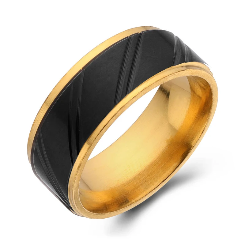 טבעת לגבר פלדת אל חלד בציפוי שחור / זהב דגם R1014