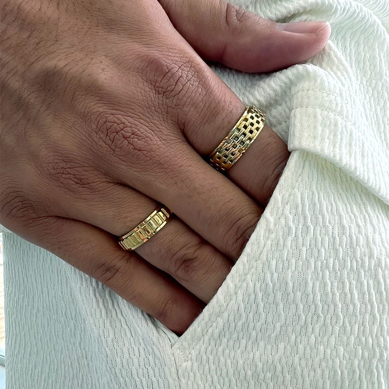 טבעת לגבר פלדת אל חלד בציפוי זהב דגם R1021