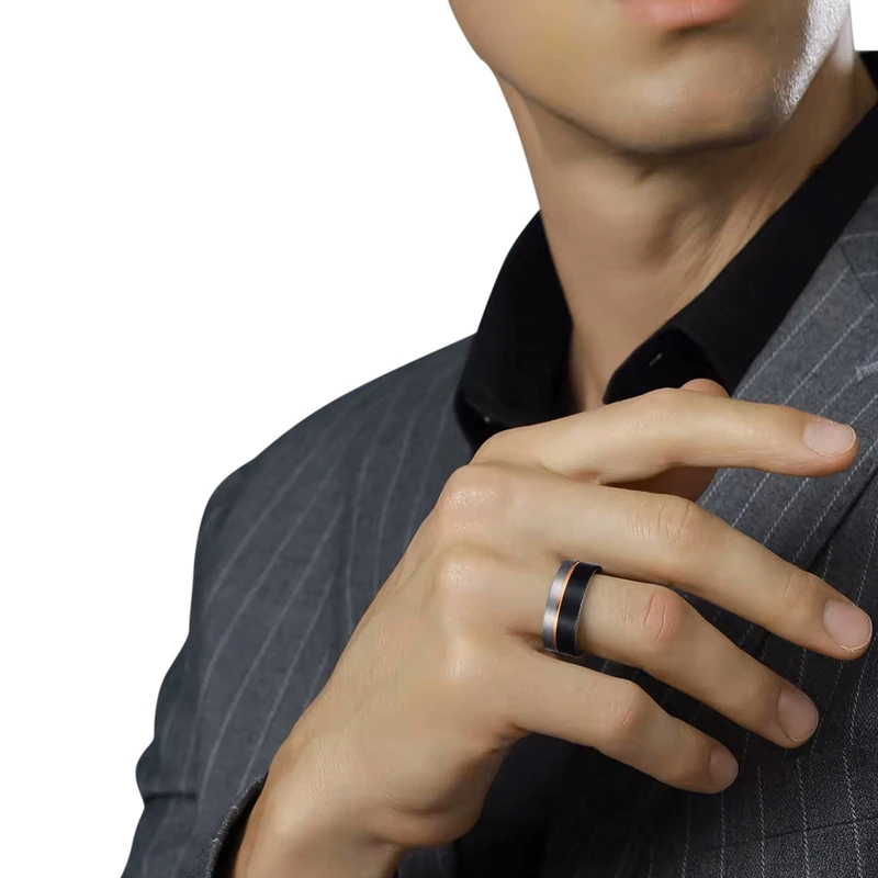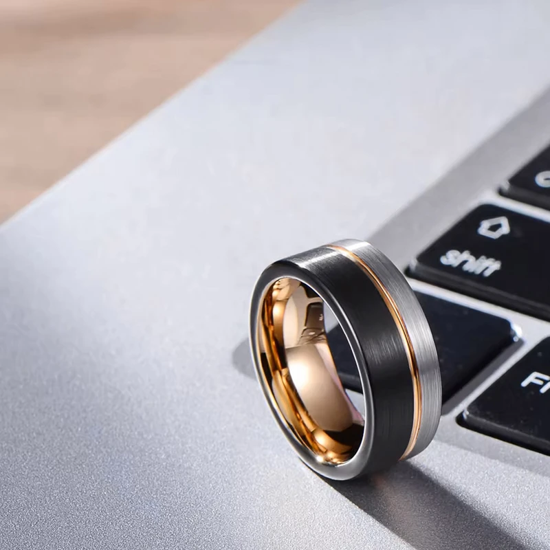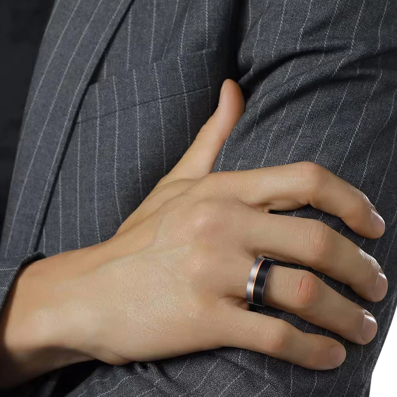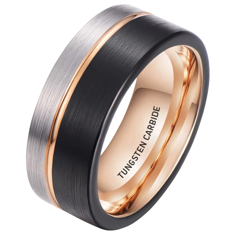 טבעת לגבר טונגסטן בציפוי שחור / רוז גולד דגם R1046