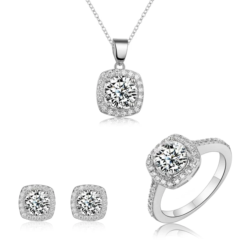 סט רייצ’ל מכסף משובץ – שרשרת | טבעת | זוג עגילים