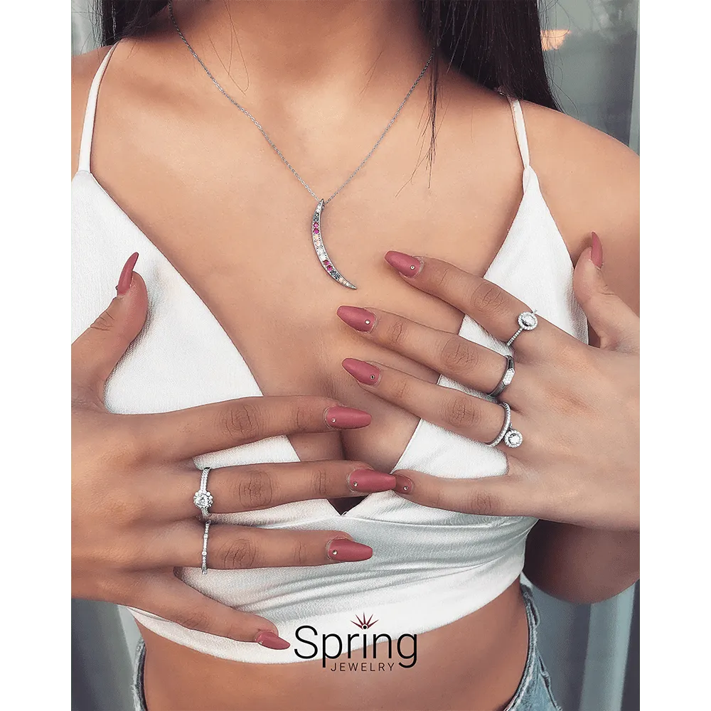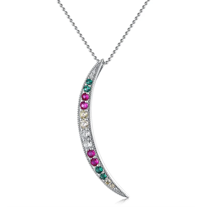 שרשרת ירח מכסף בשיבוץ צבעוני
