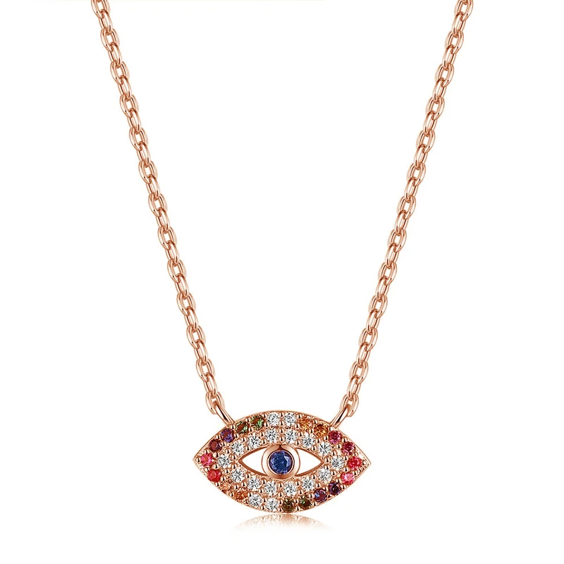 שרשרת צ’וקר / קולר עין הרע צבעונית רוז גולד משובץ