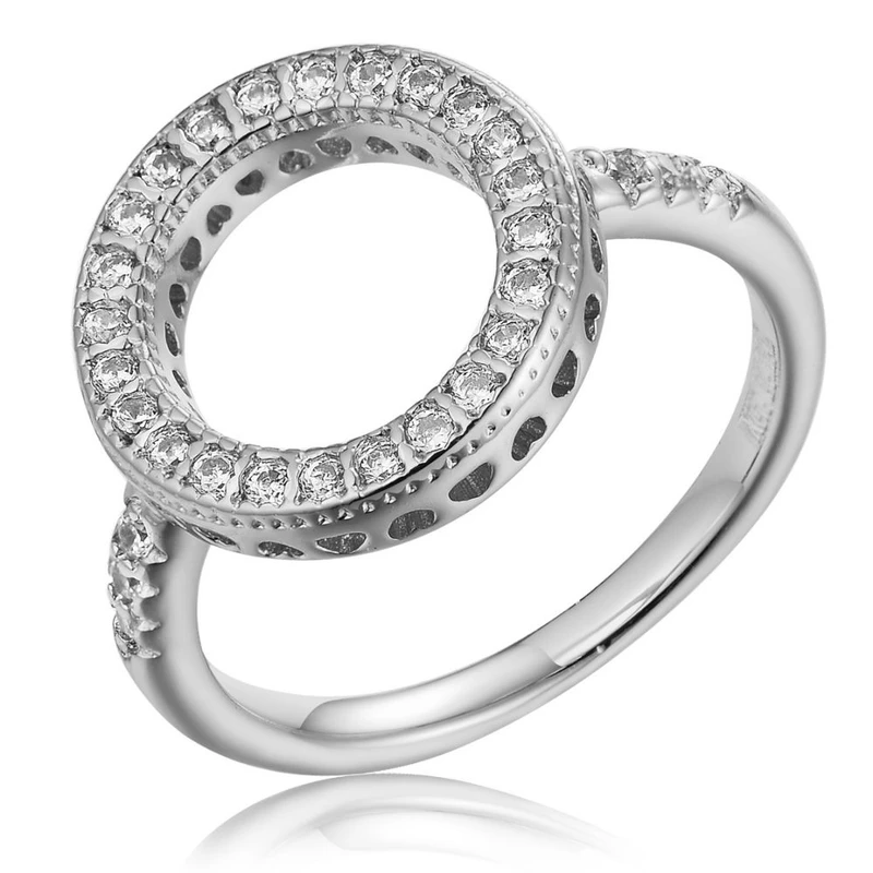 טבעת חישוק לבבות מזהב לבן 14K בשיבוץ זירקונים דגם H5