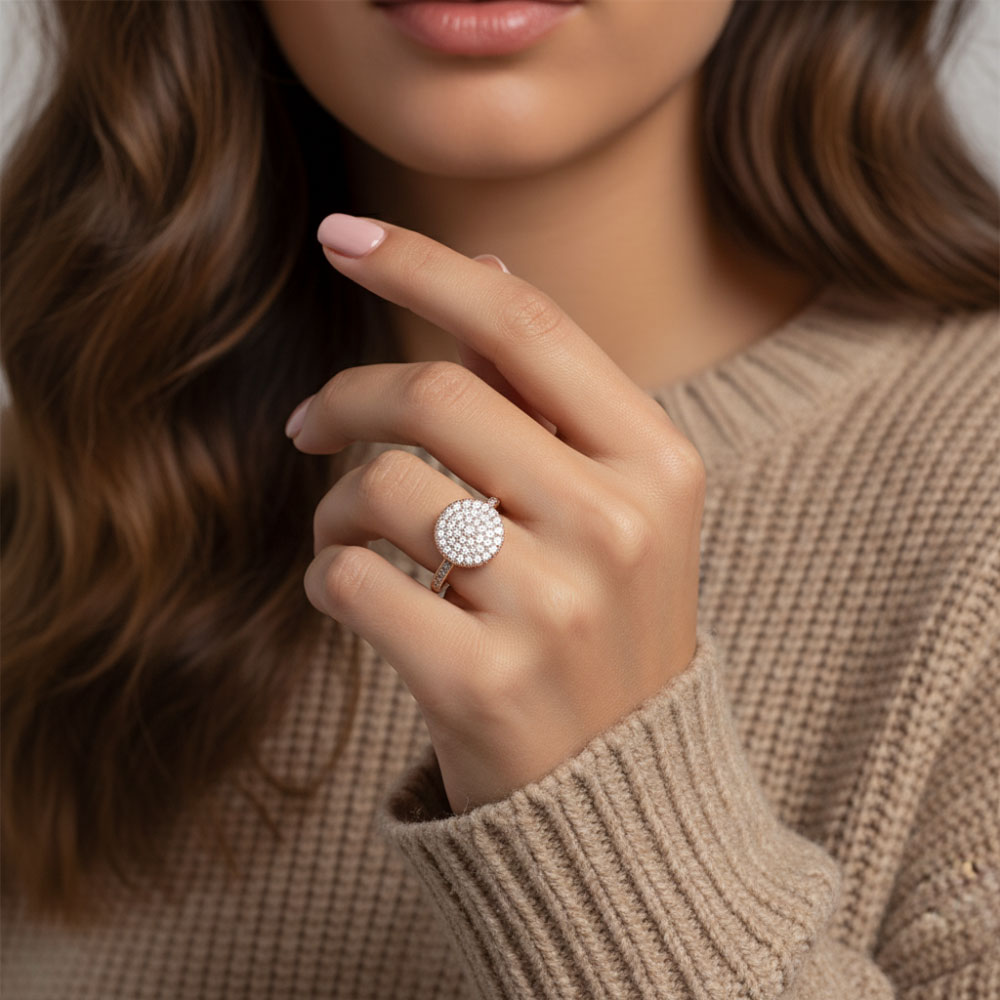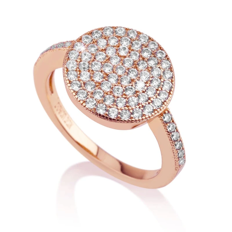 טבעת עיגול רוז גולד משובץ