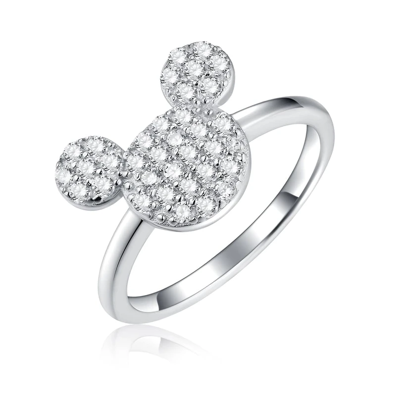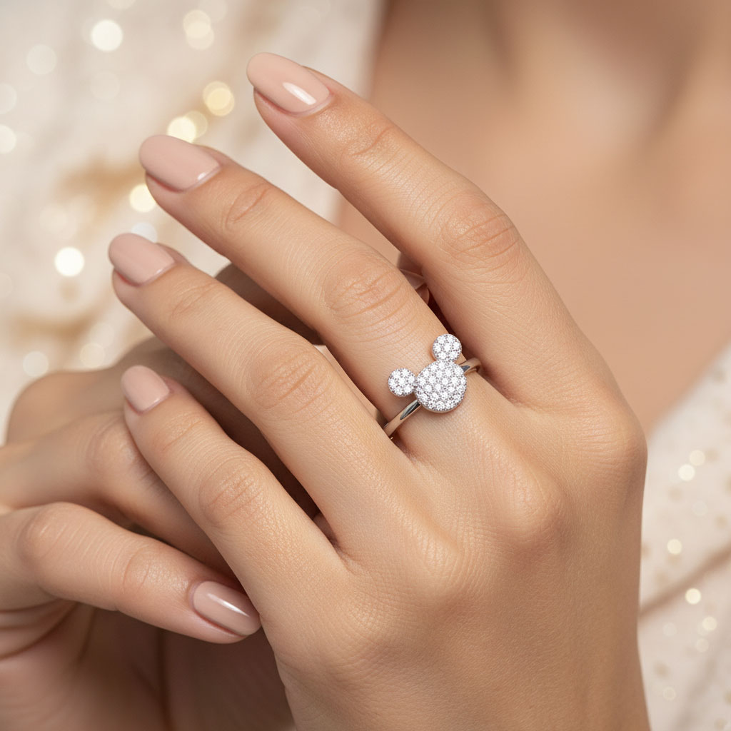 טבעת מיקי מכסף משובץ