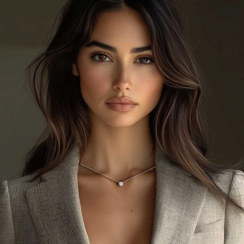 שרשרת סוליטר מכסף משובץ