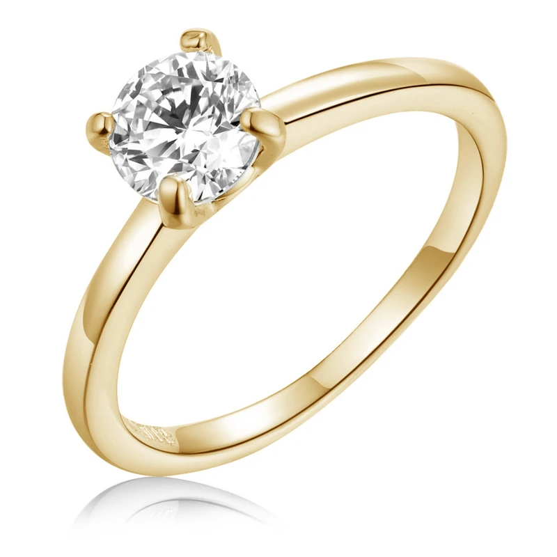 טבעת סוליטר מזהב צהוב 14K בשיבוץ זירקון