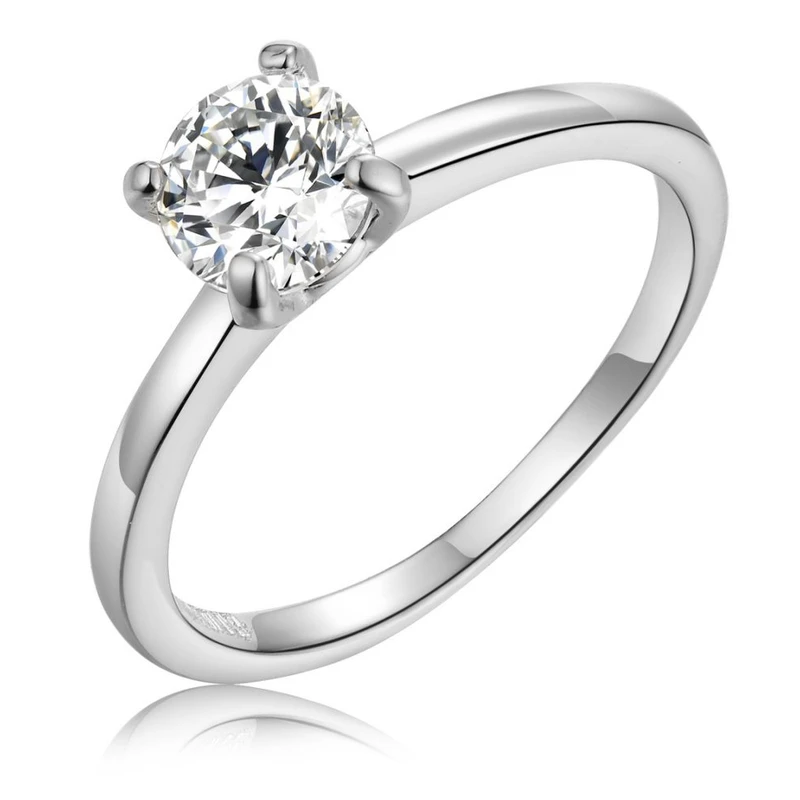 טבעת סוליטר מזהב לבן 14K בשיבוץ זירקון