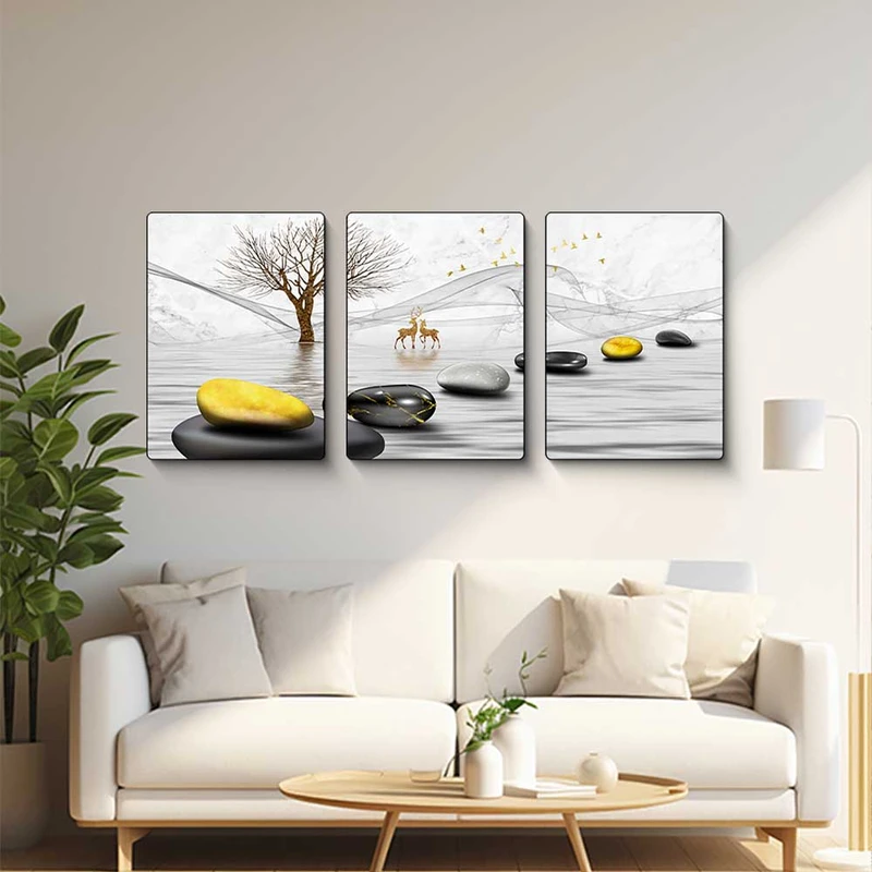 סט תמונות הקיר המרהיב הזה מציע שילוב ייחודי של אומנות ועיצוב. כל תמונה מודפסת על קריסטל פורצלן איכותי, המעניק מראה יוקרתי דמוי זכוכית. העיצוב המוקפד והגימור המעולה מבטיחים שהתמונות ישמרו על יופיין לאורך זמן.