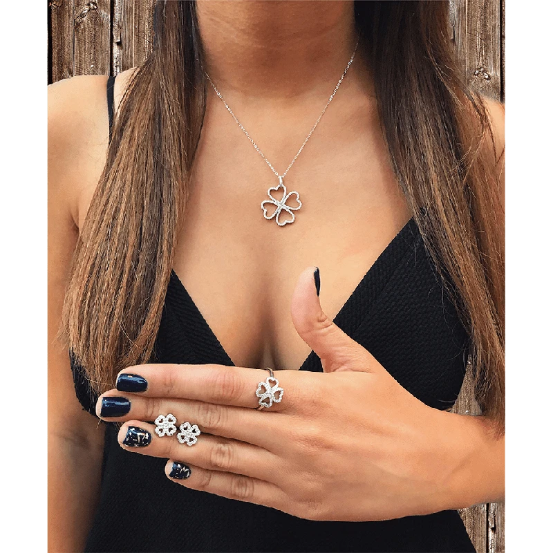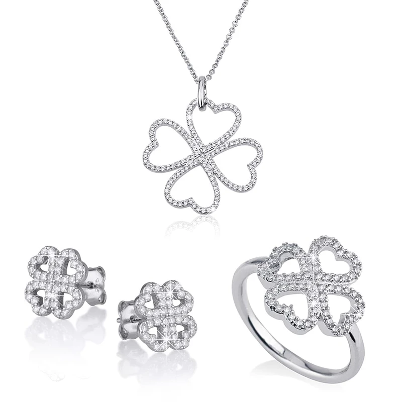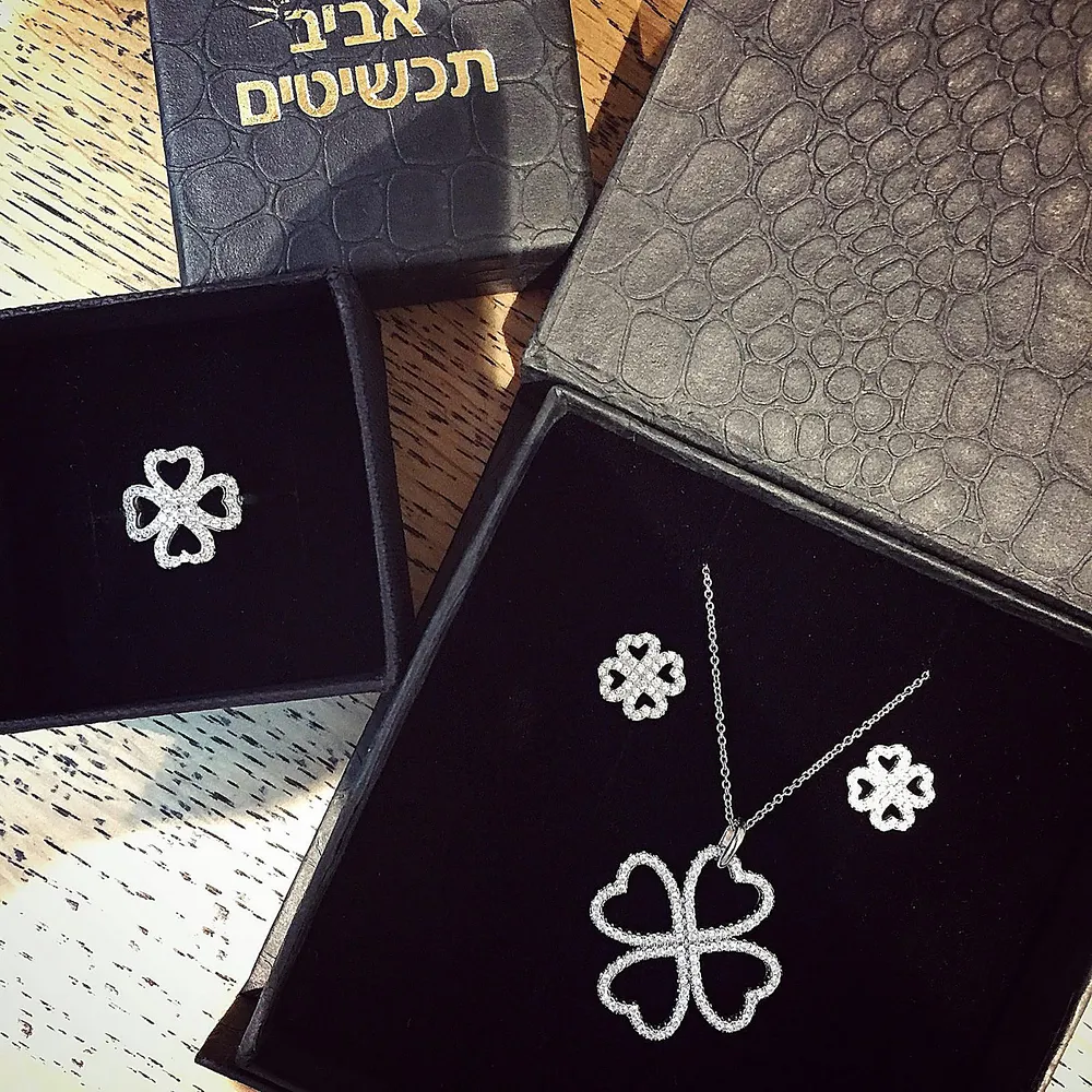 סט תכשיטי תילתן מכסף משובץ שרשרת | טבעת | עגילים