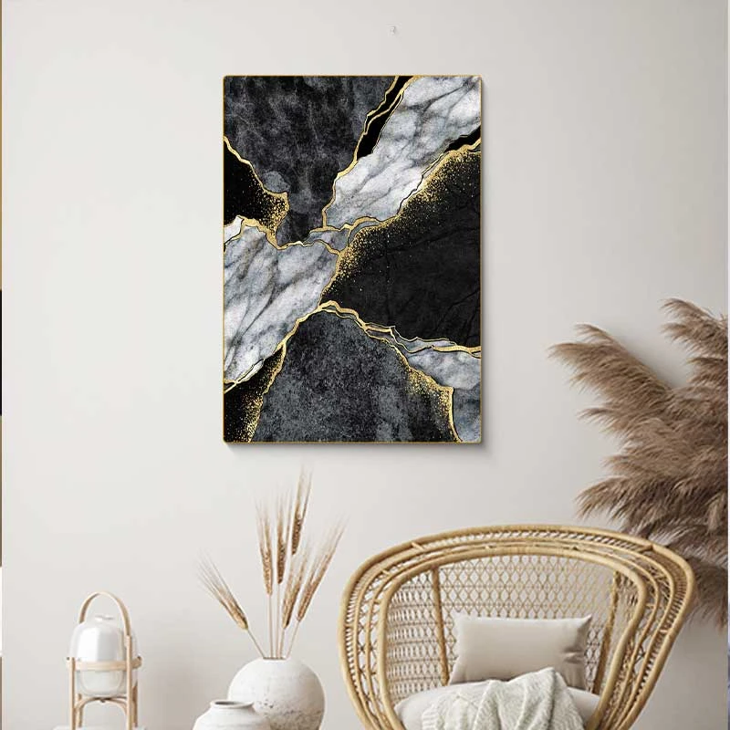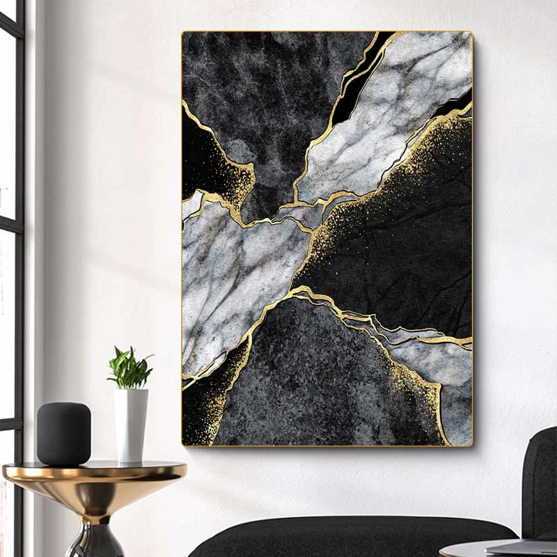 • תיאור: עיצוב שיש בגוונים שחור, אפור, זהב ולבן