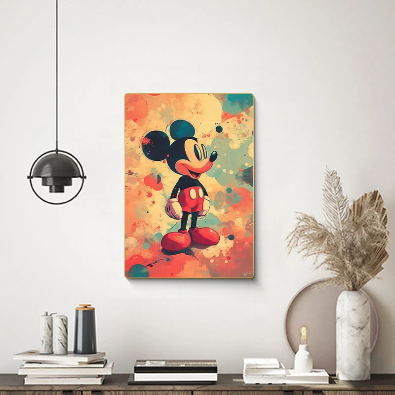 תמונת קיר מעוצבת קריסטל פורצלן דגם WP30 היא יצירת אמנות אמיתית שתעניק לביתכם או למשרדכם מראה יוקרתי ומודרני. תמונת הקיר מציגה את הדמות האהובה מיקי בעיצוב וינטג’ מרהיב, המשלב צבעים חמימים ומרקמים מיוחדים. איכות הדפסה גבוהה מבטיחה צבעים עזים וברורים לאורך שנים.
