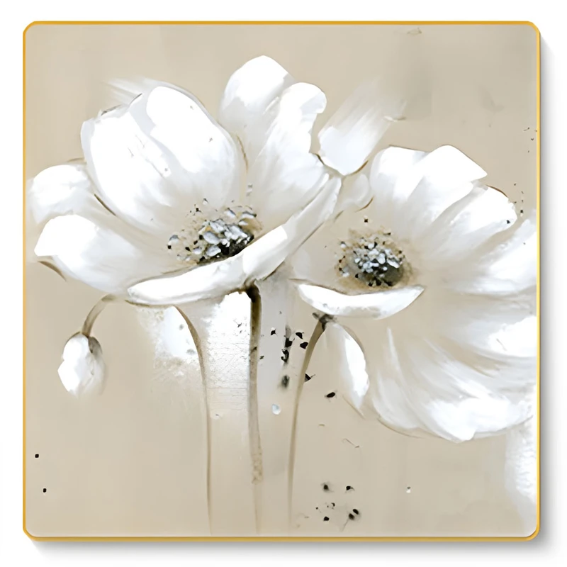 • תיאור: פרחים לבנים על רקע בג’.